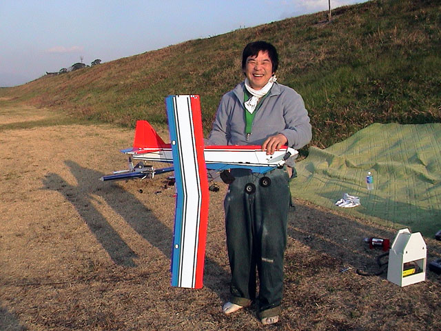 アルチメイト回収の為、川の中に入ったのでズボンと足下が濡れていますが、何故か本人は笑っています。(爆笑)
